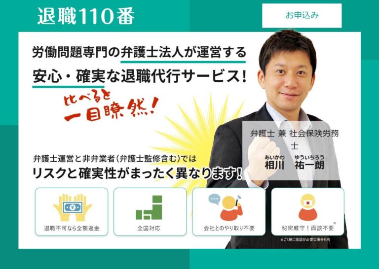 ※社会保険労務士資格所有は『退職110番』公式サイトに記載